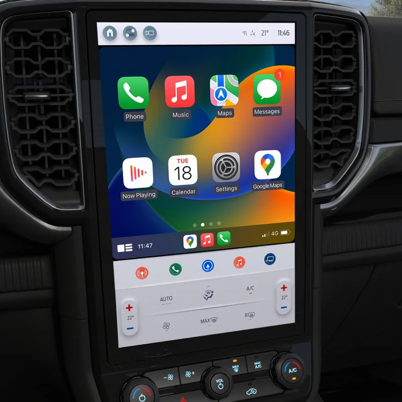 Công nghệ trang bị trên chiếc ô tô bán tải Ford Ranger có nhiều cải tiến vượt tội, giúp Ranger trở thành chiếc xe thông minh nhất phân khúc. Màn hình giải trí trung tâm được kết nối với hệ thống camera 360 độ, chiếc xe được kết nối thông minh, trực quan hơn với SYNC4. Hệ thống âm thanh B&O® cao cấp nhằm đưa đến trải nghiệm âm thanh sống động, đầy cảm xúc. Hệ thống Cân bằng điện tử ESP, hệ thống Chống bó cứng phanh (ABS) & Phân phối lực phanh điện tử (EBD), hệ thống Cảnh báo điểm mù BLIS kết hợp Cảnh báo xe cắt ngang giúp hỗ trợ người lái.